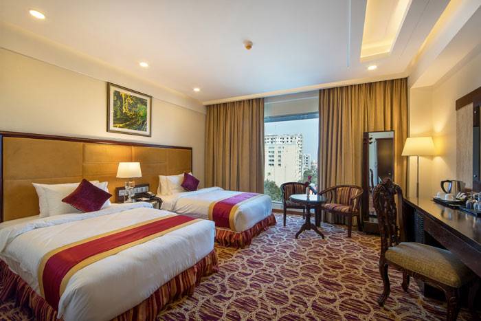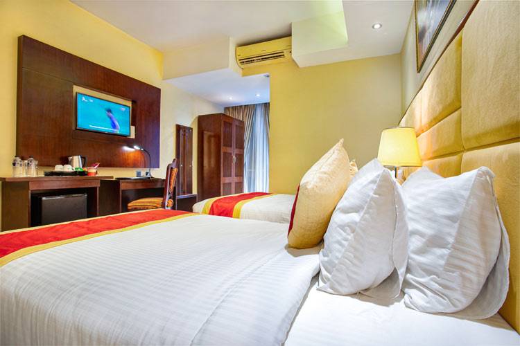 The Deluxe Twin room is a comfortable and inviting space, thoughtfully designed for a relaxing stay. Featuring two Queen Size beds, it offers ample room and comfort for guests to unwind. The beds are dressed in luxurious bed linens, ensuring […]